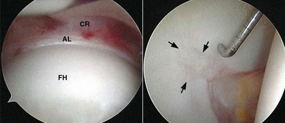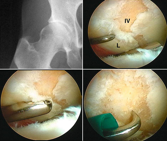 · As lesões intra-articulares são geralmente tratadas por artroscopia (rotura do labrum, lesão da cartilagem, rotura do ligamento redondo, corpo livre, sinovite, condromatose, quisto intraarticular, artrite séptica, alguns casos de prótese da anca dolorosa).