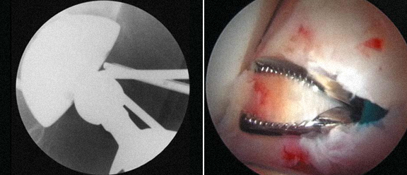 não diagnosticadas pela clínica e pela imagiologia ou em casos de dúvidas no diagnóstico, utiliza-se a artroscopia como método diagnóstico.