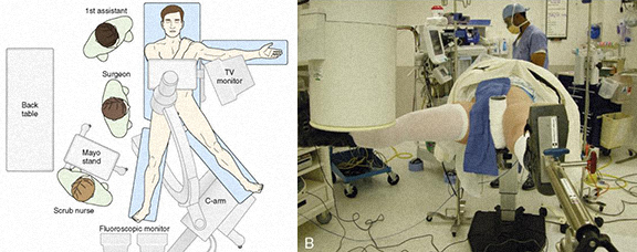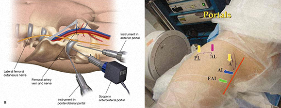 Pelas técnicas endoscópicas com utilização do artroscópio pode-se fazer o tratamento das lesões peri-articulares da articulação da anca, tais como tenotomia do psoas, plastia da banda ileotibial, reparação do tendão dos abductores, bursectomia, tratamento do conflito isquiofemoral, tratamento do síndrome do piriforme, descompressão do nervo ciático, etc.).
