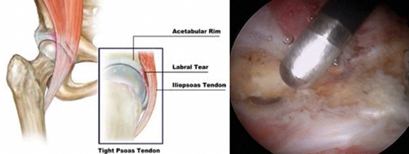 A rotura também pode ser intrasubstância do labrum e este tipo de rotura é mais frequente no conflito tipo pincer.